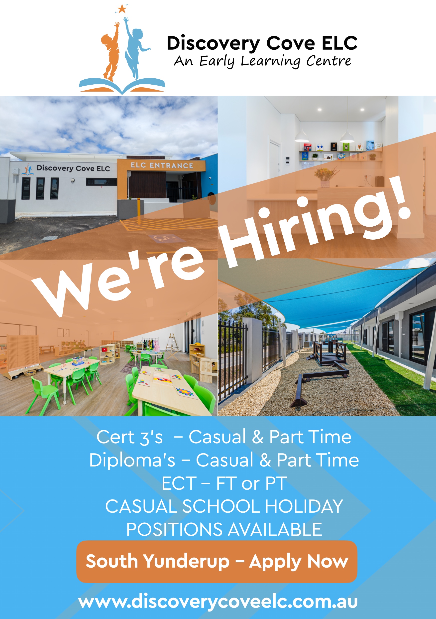 Come and be part of our amazing staff team at Discovery Cove ELC and help us create an inspiring environment that the community can be proud of.